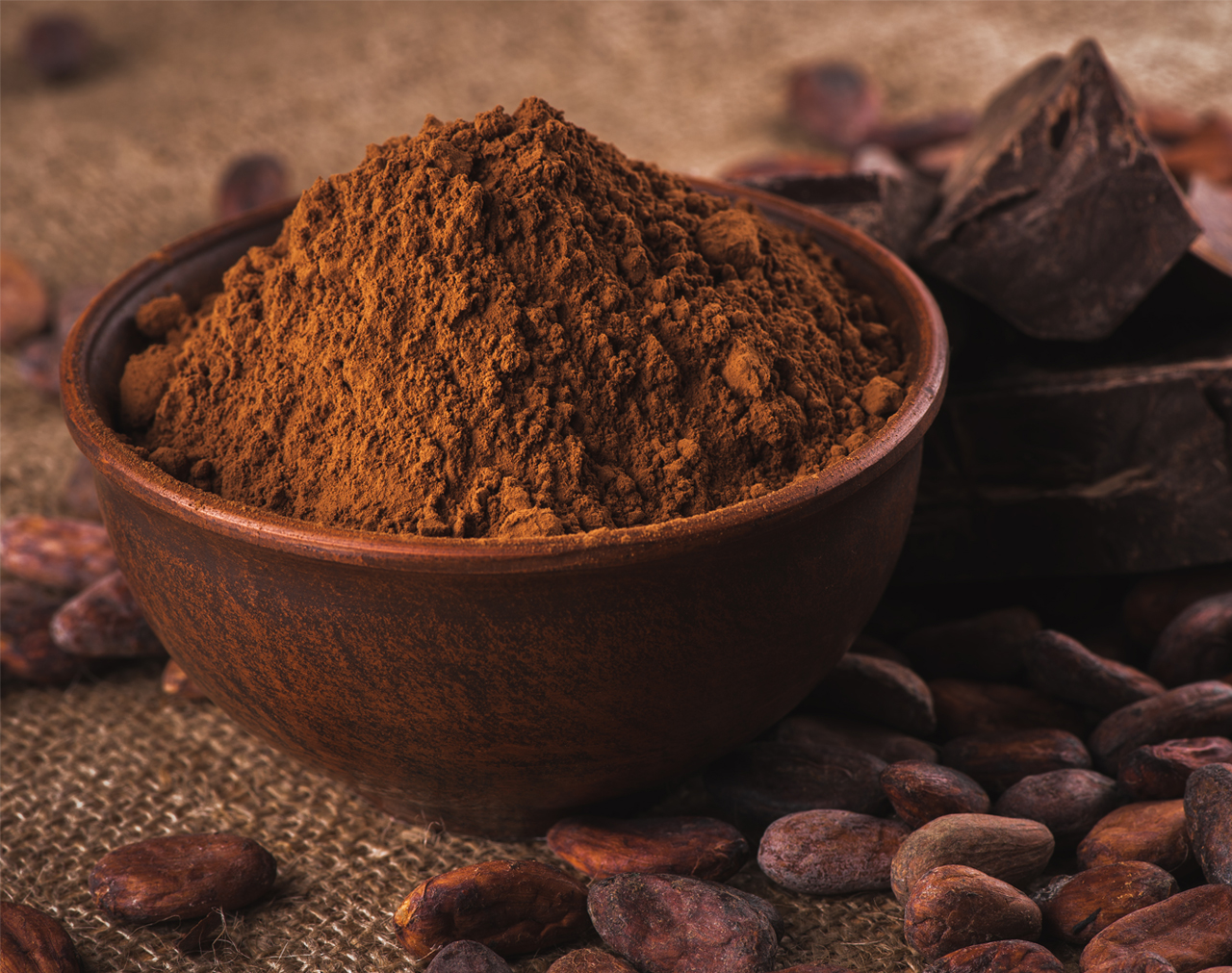 Cocoa powder is an unsweetened powder produced by crushing the cocoa beans extracted from fruits of the cocoa tree. The chocolate liquor is pressed to remove cocoa butter and the residual cocoa solids are then processed to create fine unsweetened cocoa powder. Its rich taste and aroma make it a good flavouring agent useful for preparing beverages, biscuits, cakes, and ice creams